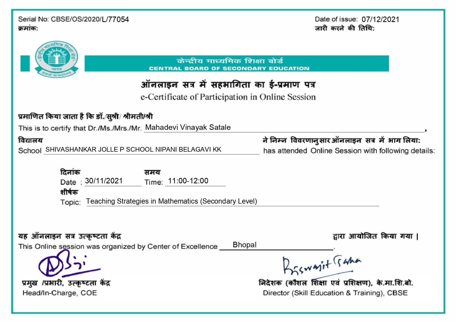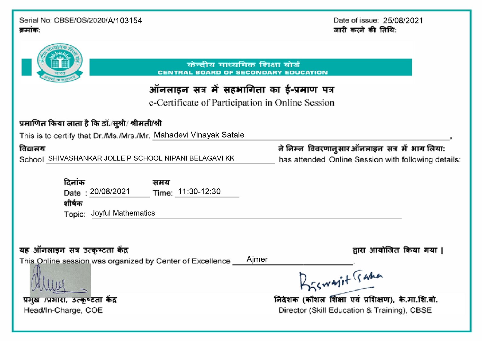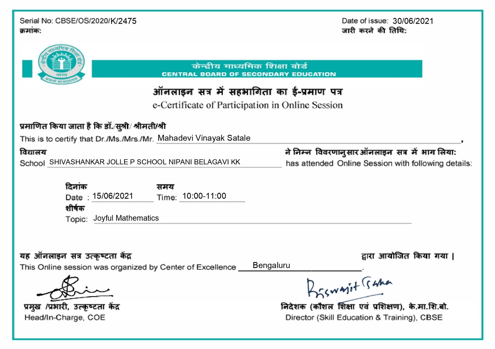 Shivshankar Jolle Public School Nangnoor-Nipani.
