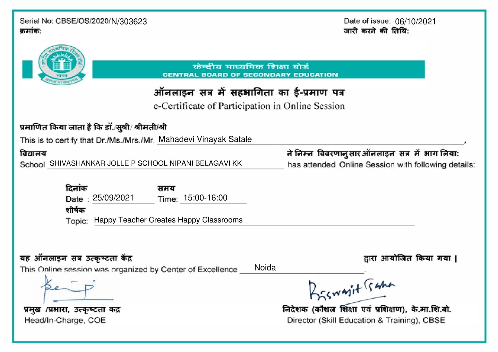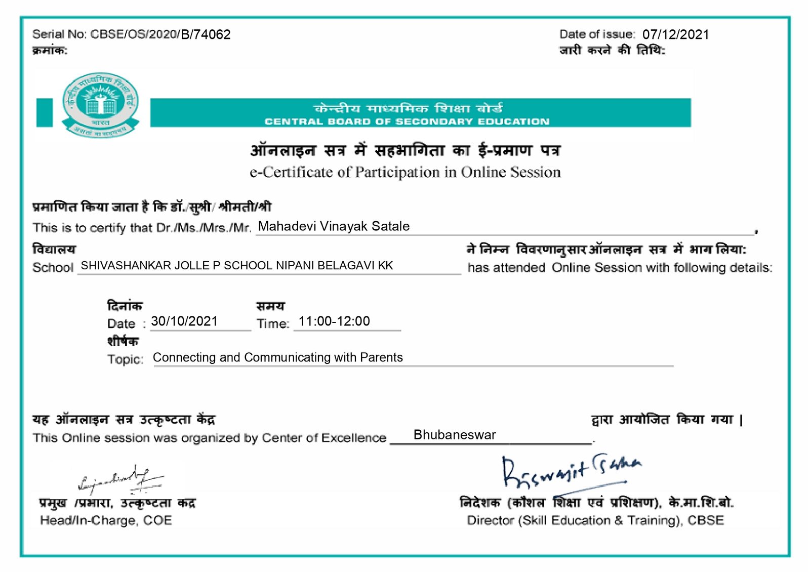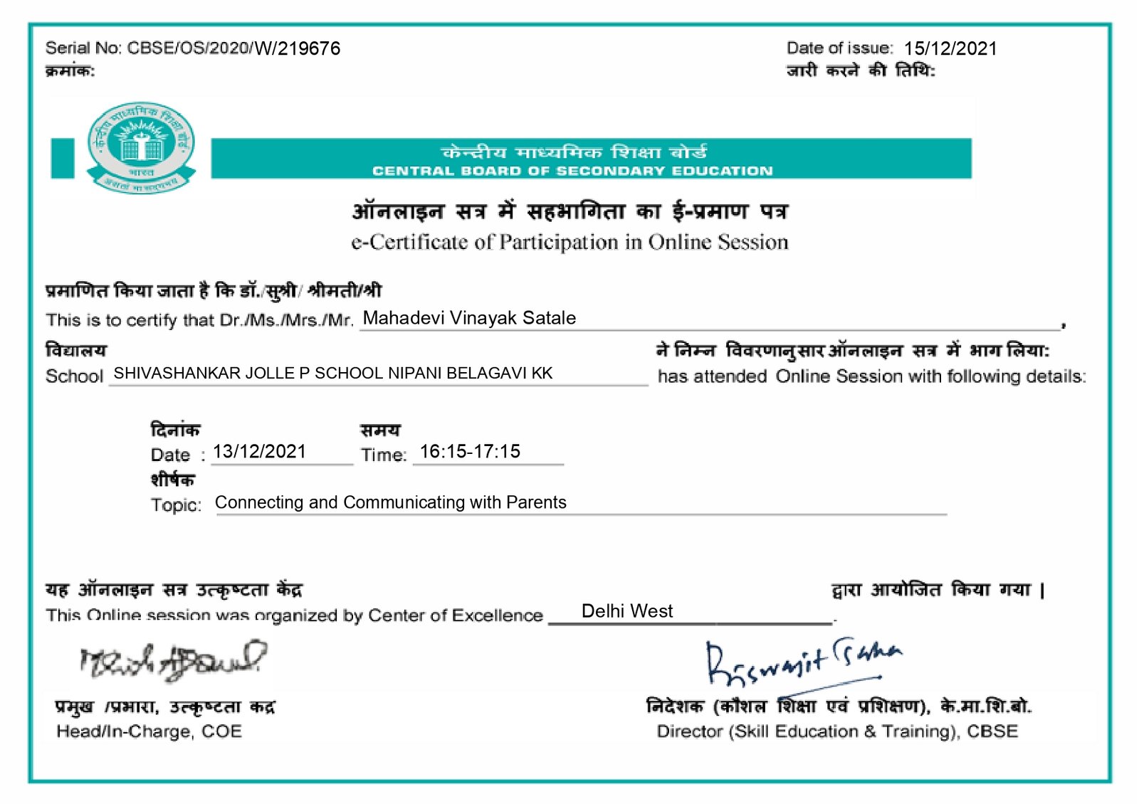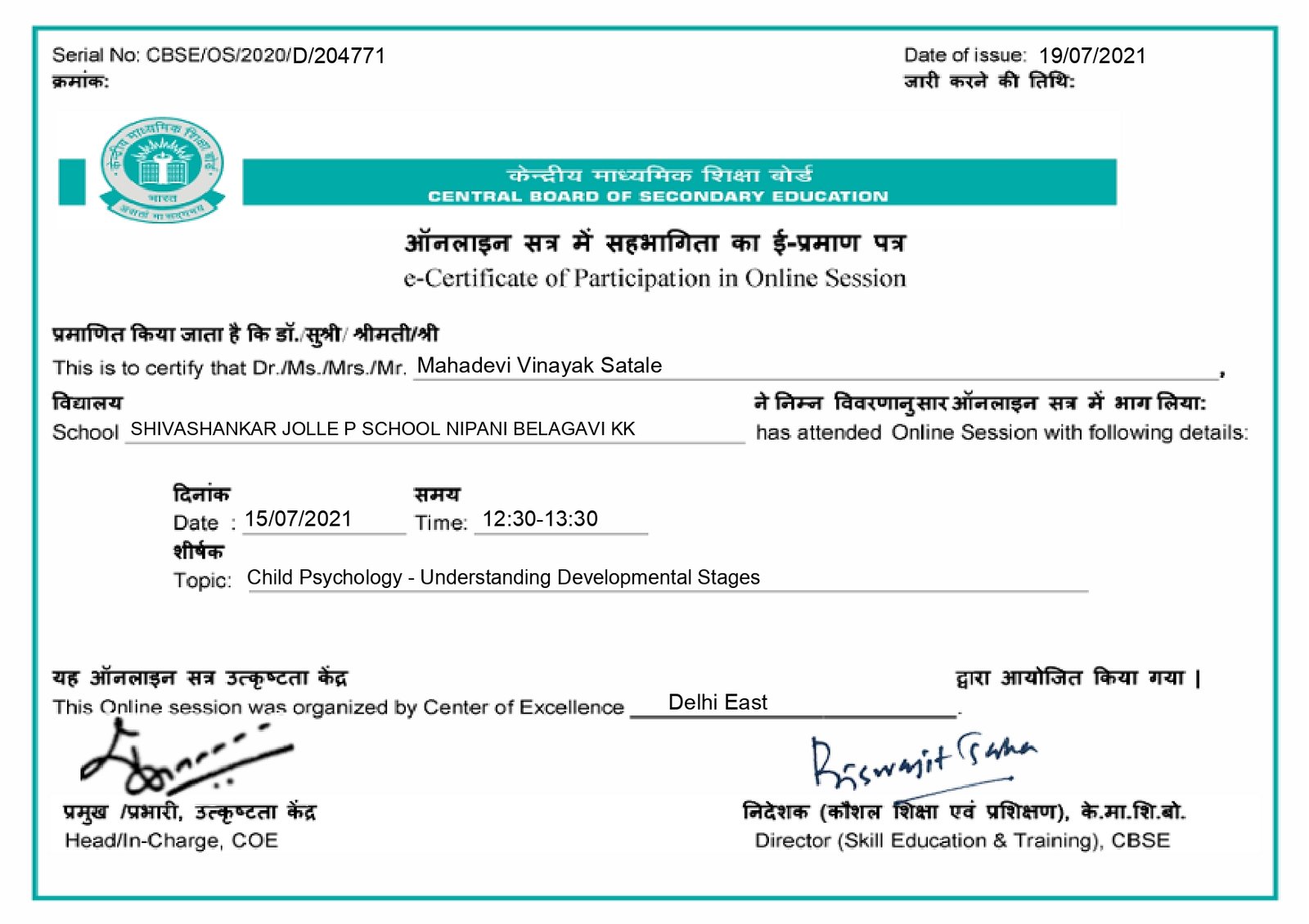 Affiliated to CBSE New Delhi, Affiliation Code : 830771