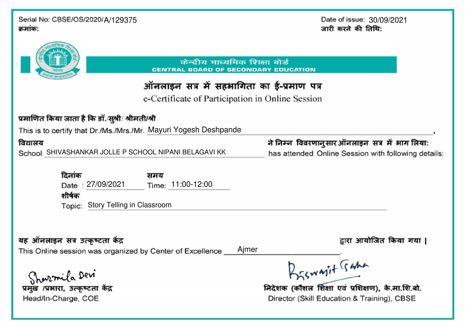 Shivshankar Jolle Public School Nangnoor-Nipani.