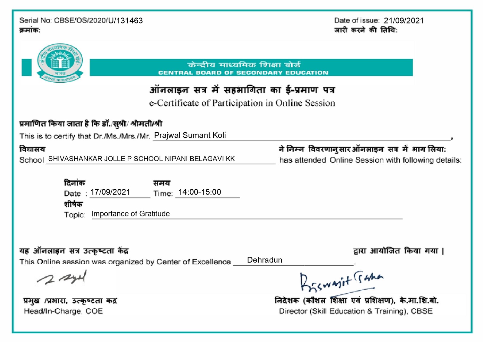 Affiliated to CBSE New Delhi, Affiliation Code : 830771