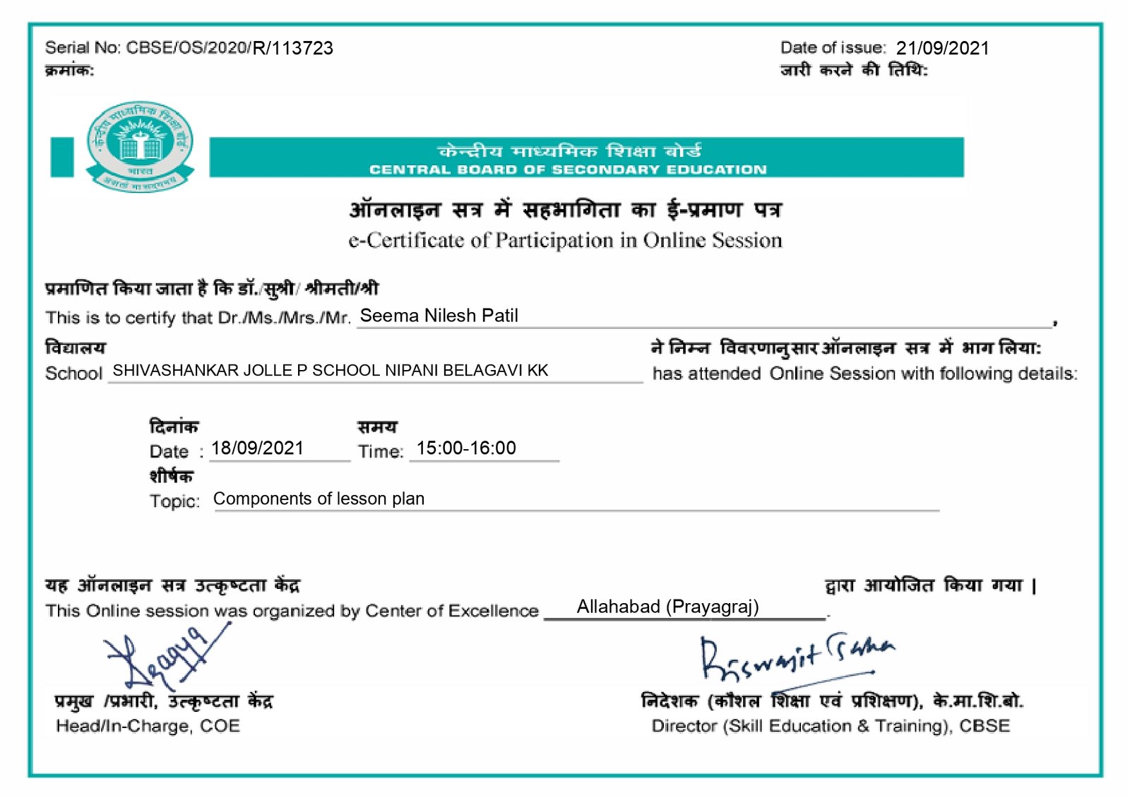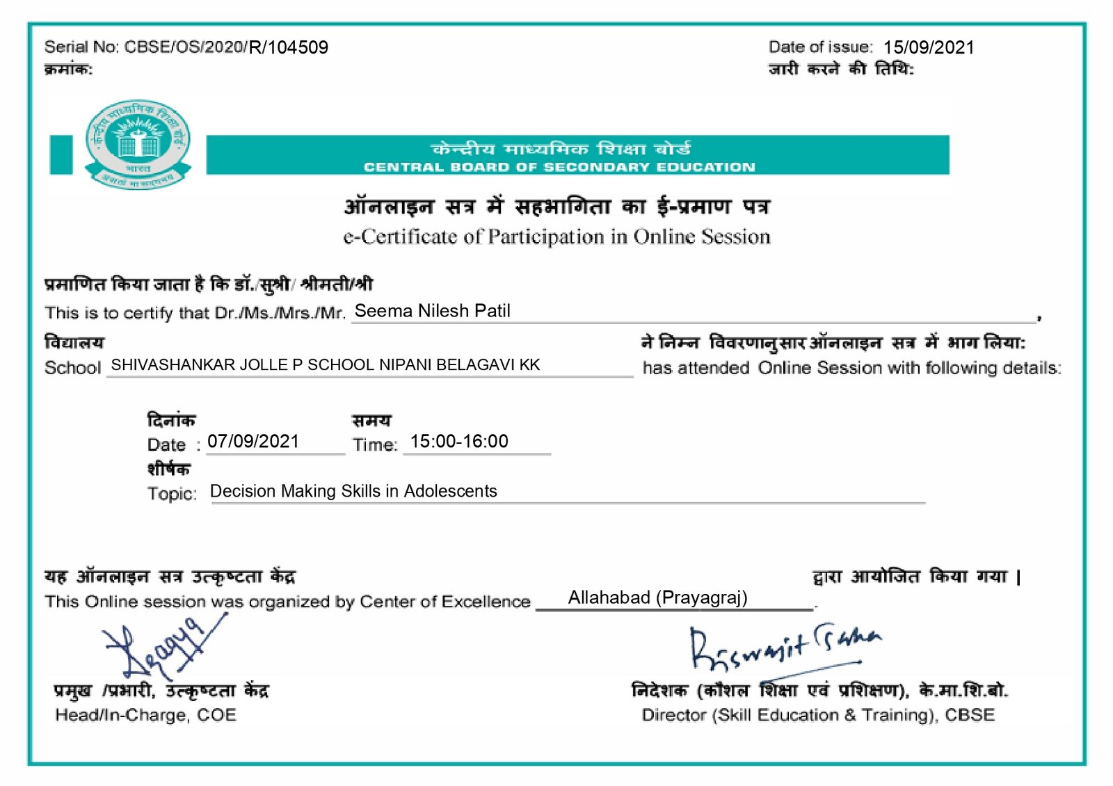 Affiliated to CBSE New Delhi, Affiliation Code : 830771