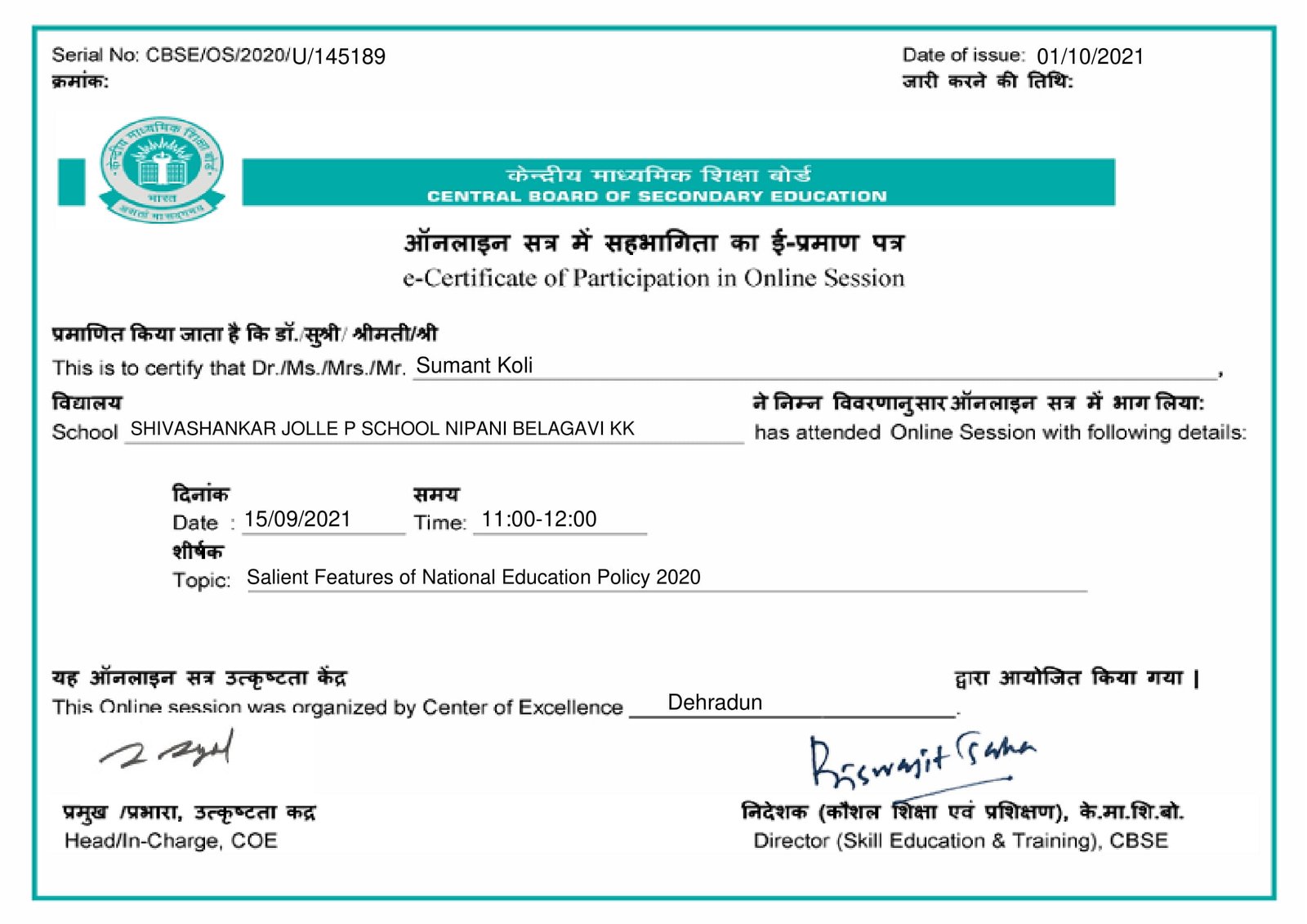 Shivshankar Jolle Public School Nangnoor-Nipani.