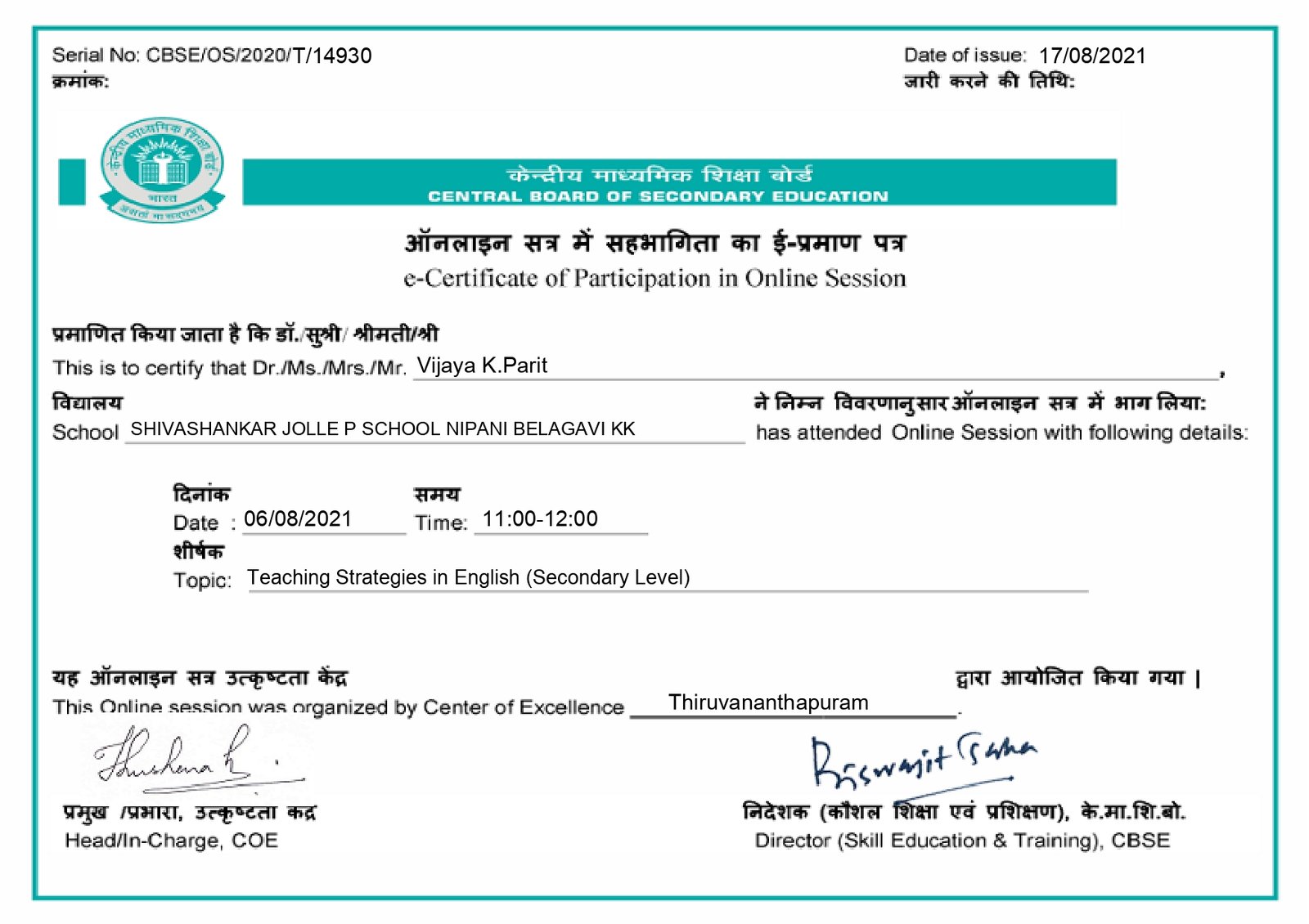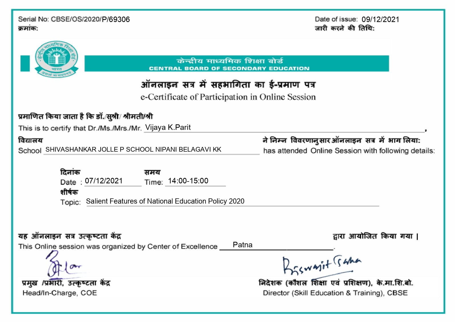 Shivshankar Jolle Public School Nangnoor-Nipani.